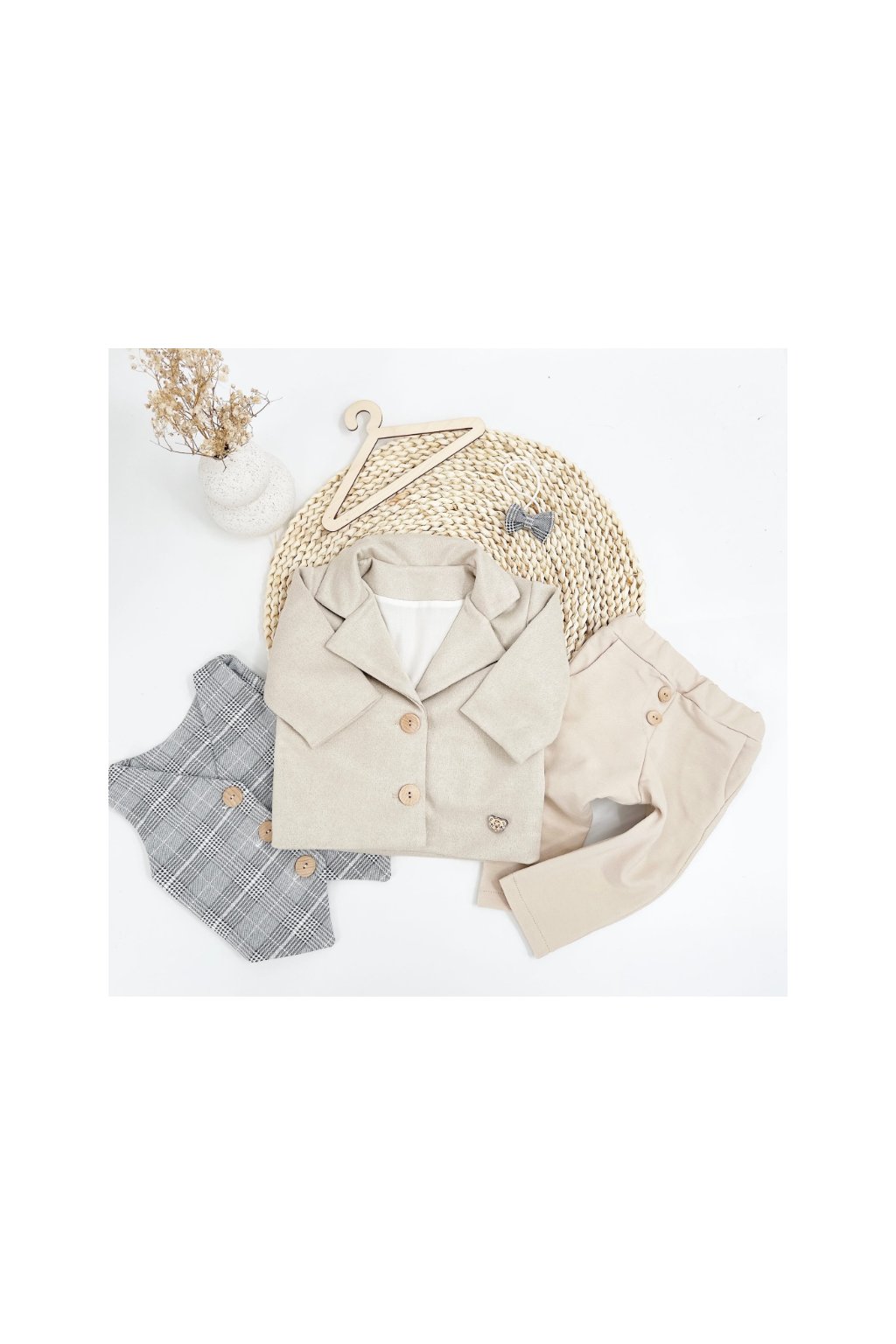 Chlapčenský semišový kabát pieskovo béžovej farbe s ľahkou podšívkou