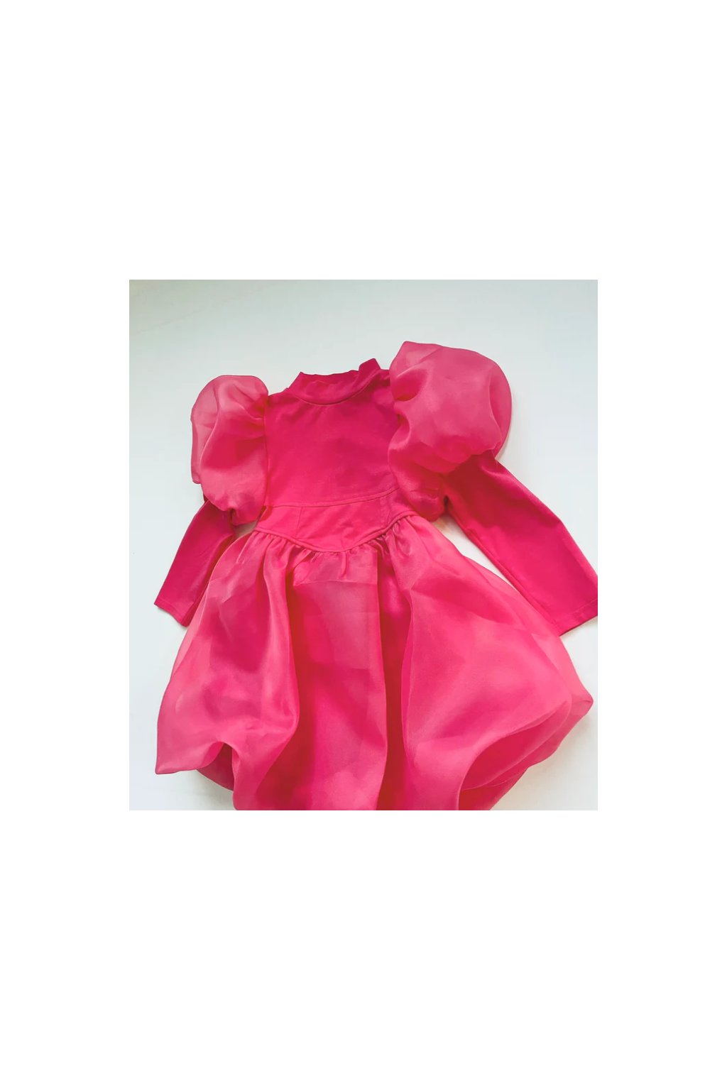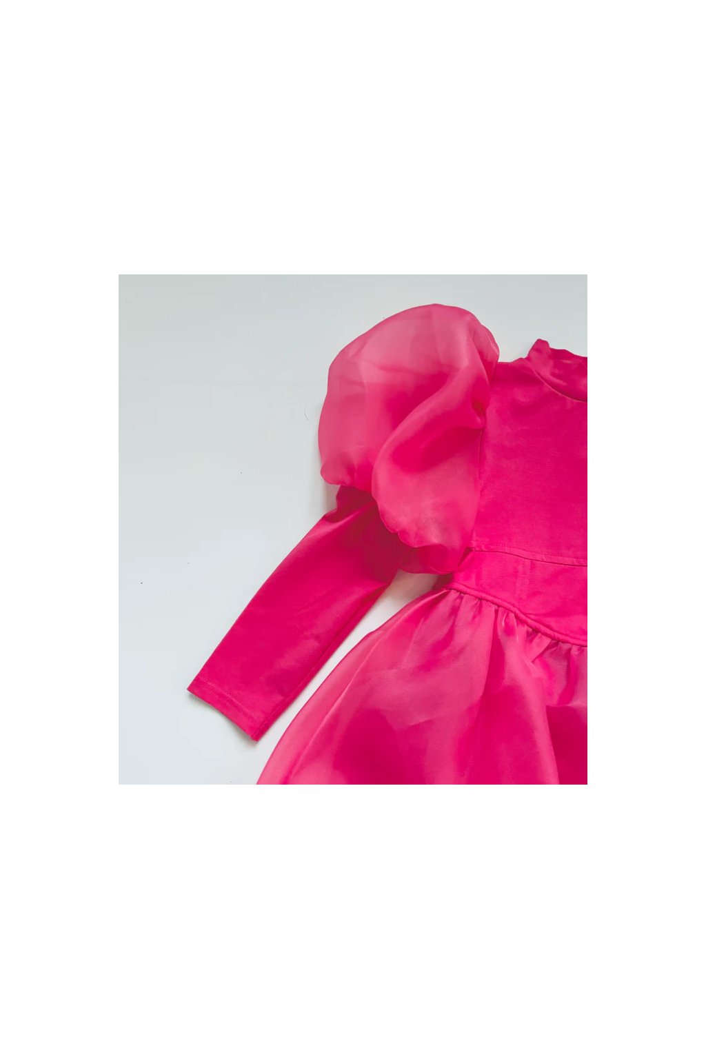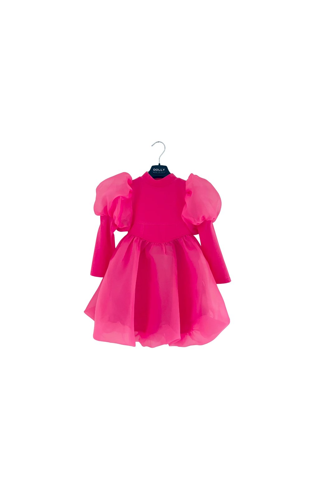 DOLLY detské šaty, dlhý rukáv - barbie pink