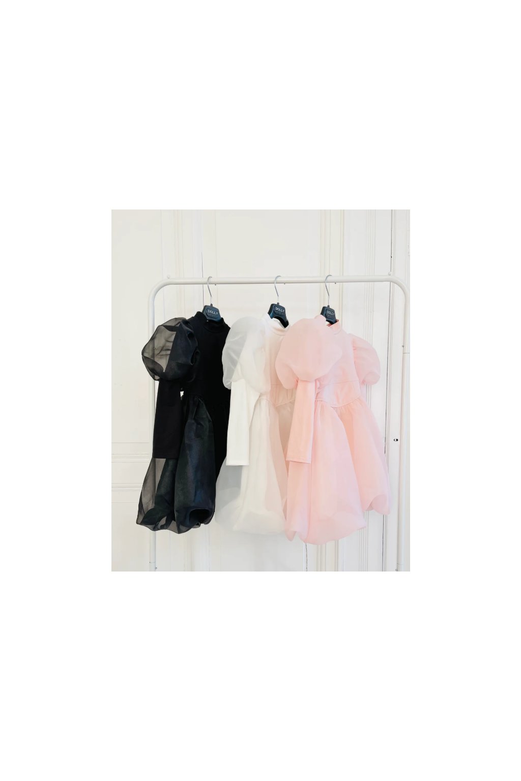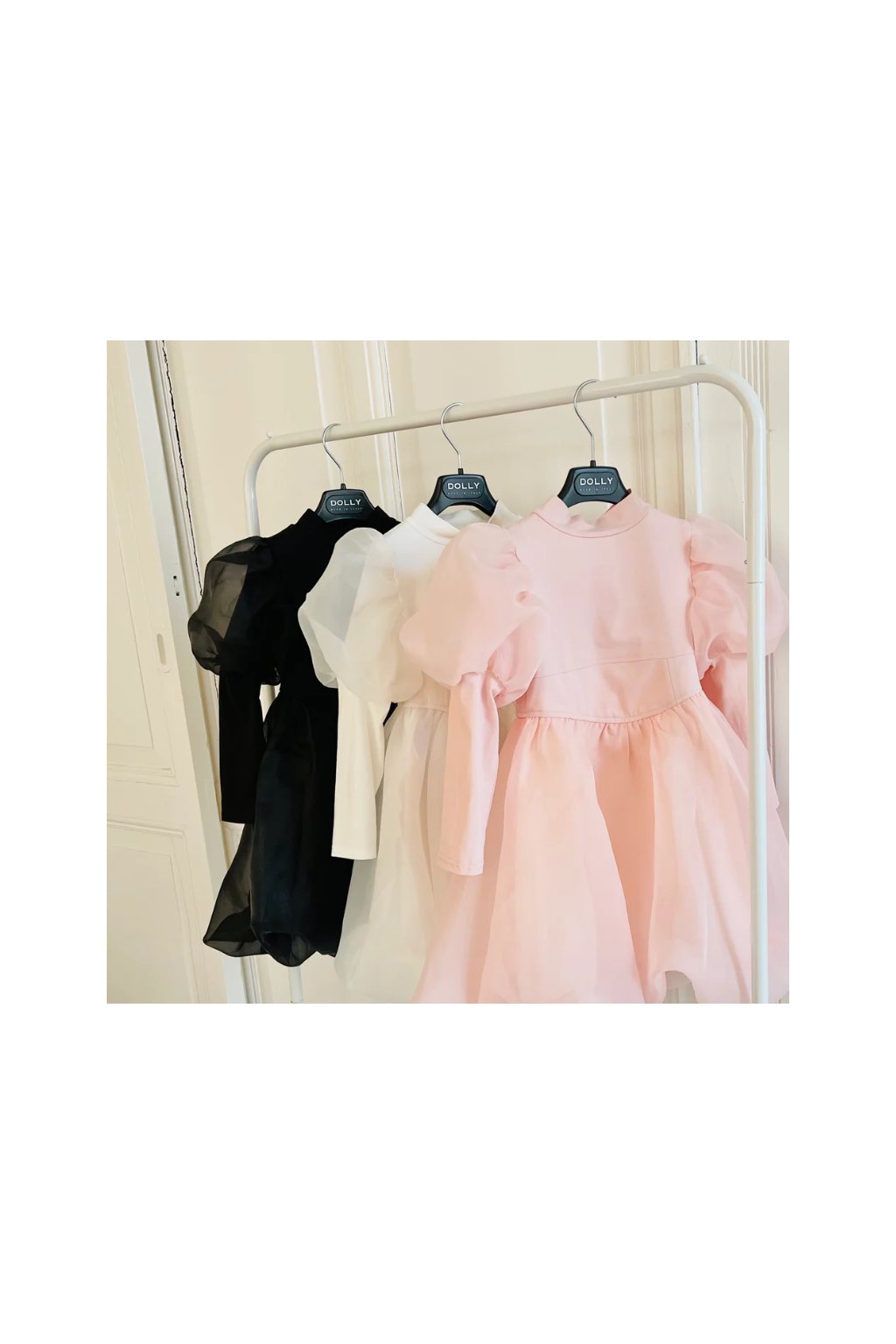 DLHÉ ŠATY DOLLY WORLD S ELASTICKÝM BAVLNENÝM BODOM A NAFÚKANÝMI RUKÁVMI Z ORGANZOVÉHO TYLU