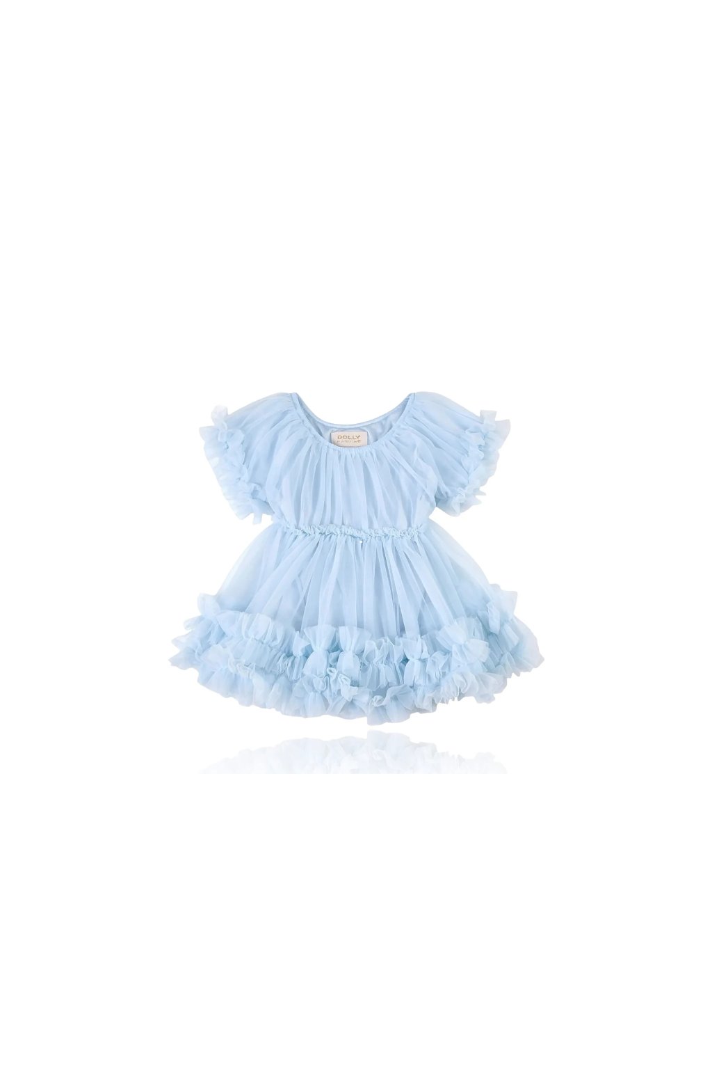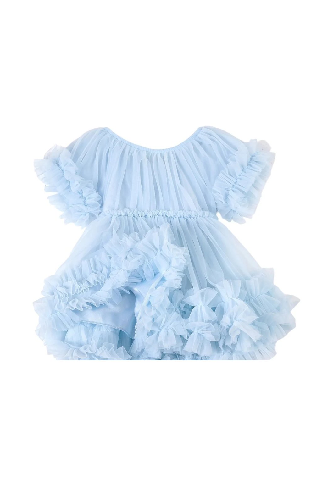 Slávne volánikové šaty sú vyrobené z charakteristického super mäkkého šifónu, ktorý je taký mäkký, že si ho musíte ohmatať, aby ste tomu uverili. Nafúknuté krátke rukávy, mnoho vrstiev a volánikov vytvára nadýchanú, plnú siluetu a je jednoducho úžasná.