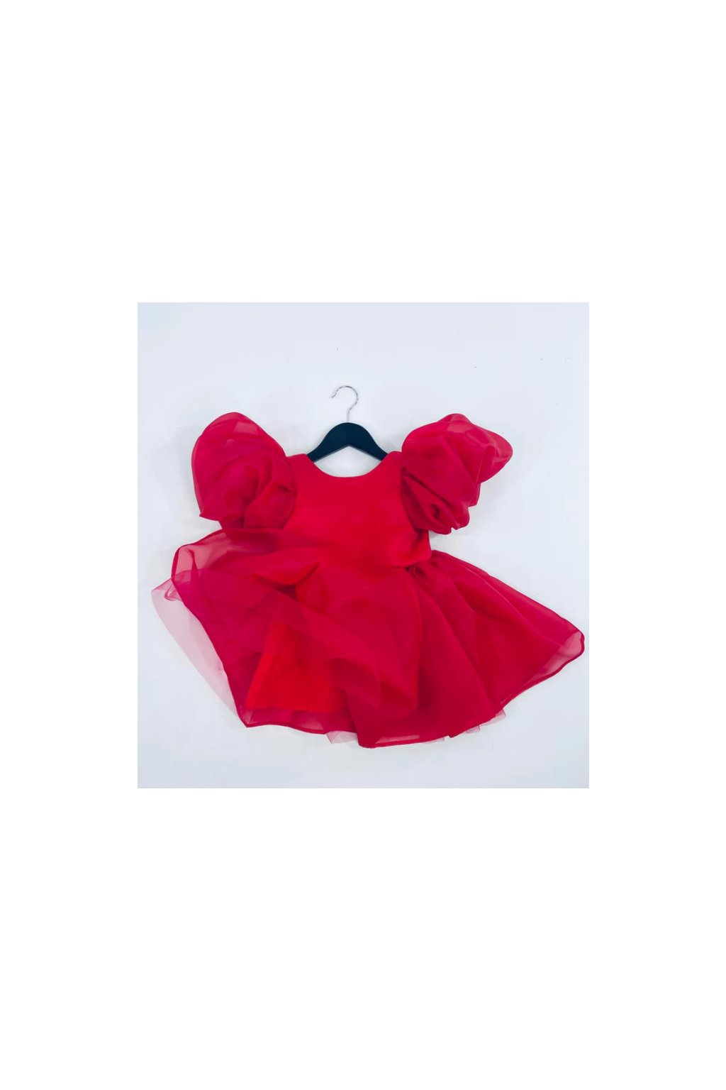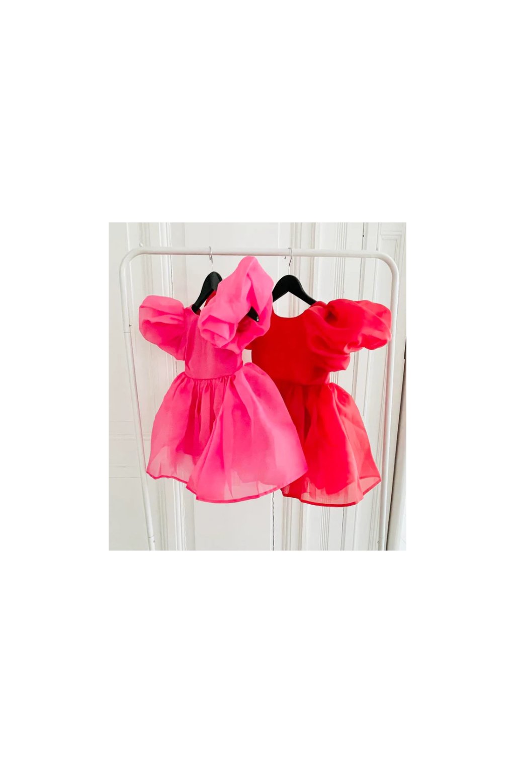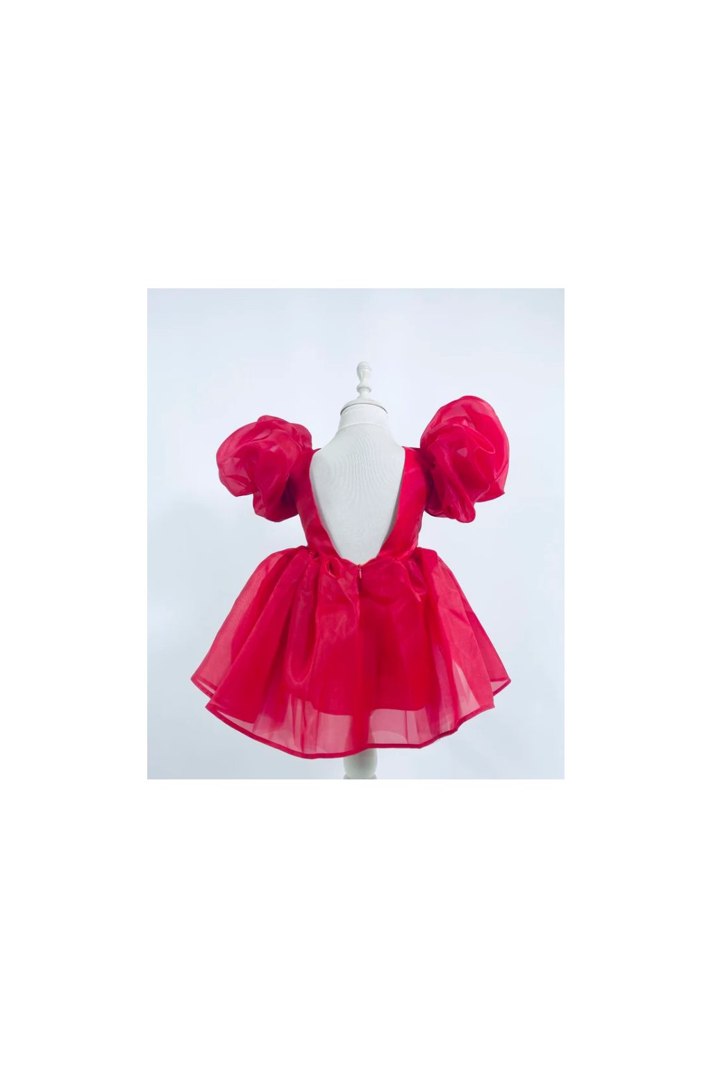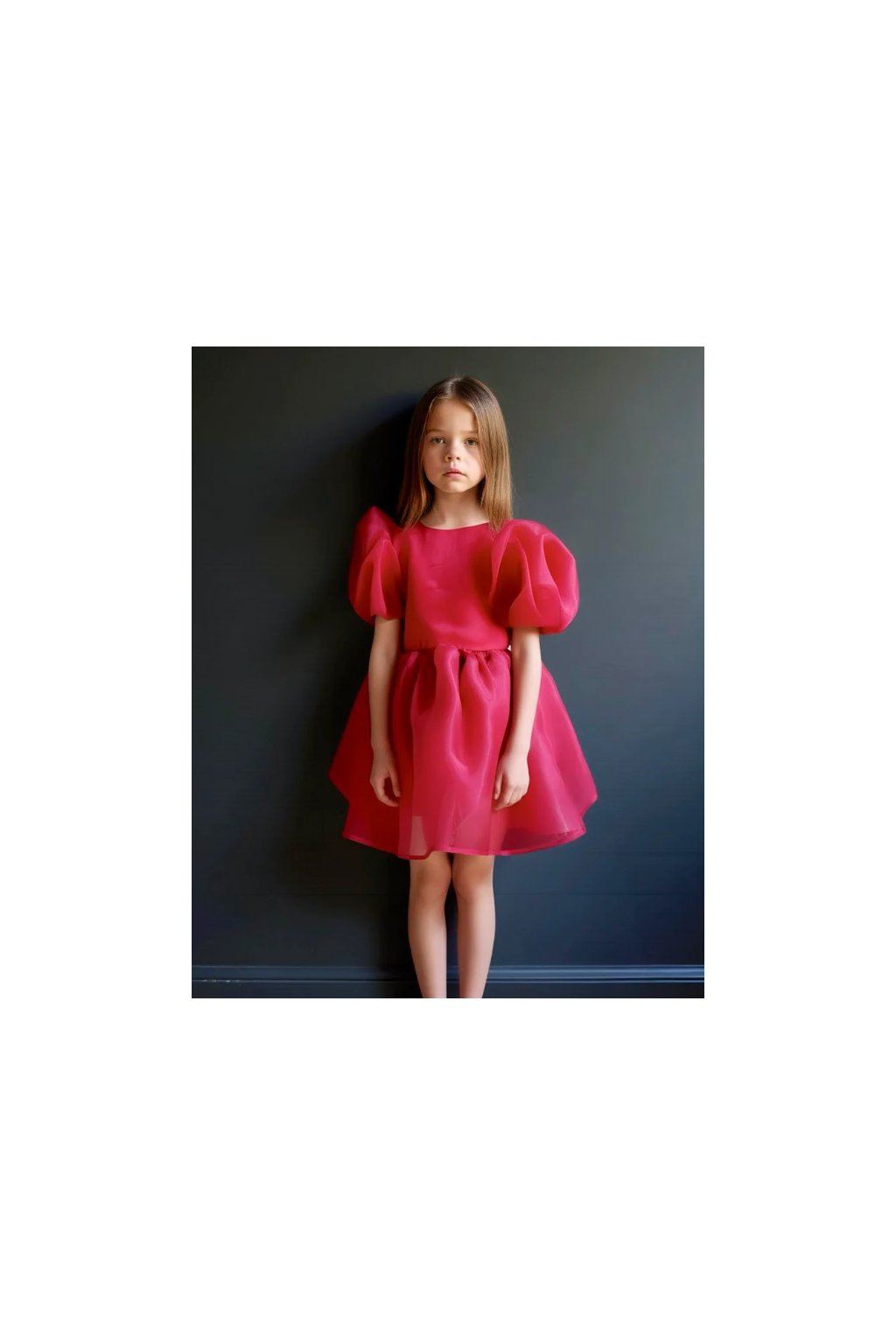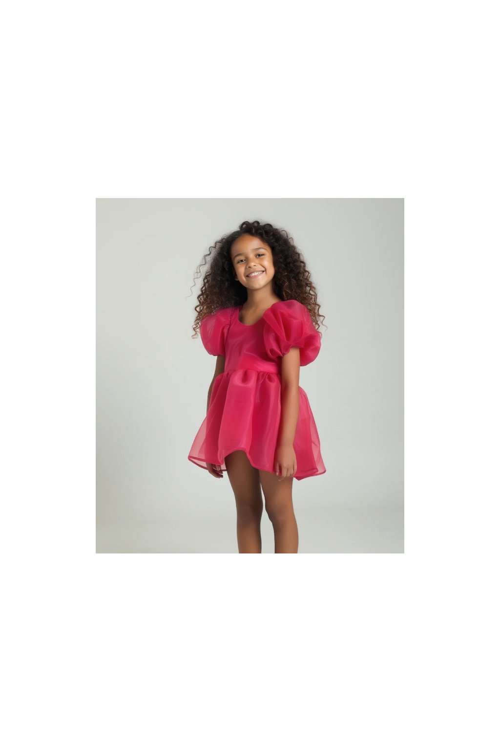 Detské elegantné šaty s nafúknutými rukávkami. Výystrih na chrbte v tvare. Sú vyrobený z mäkkej lesklej saténovej organzy, ktorá si zachováva dokonalý tvar a vytvára úžasnú siluetu DOLLY.