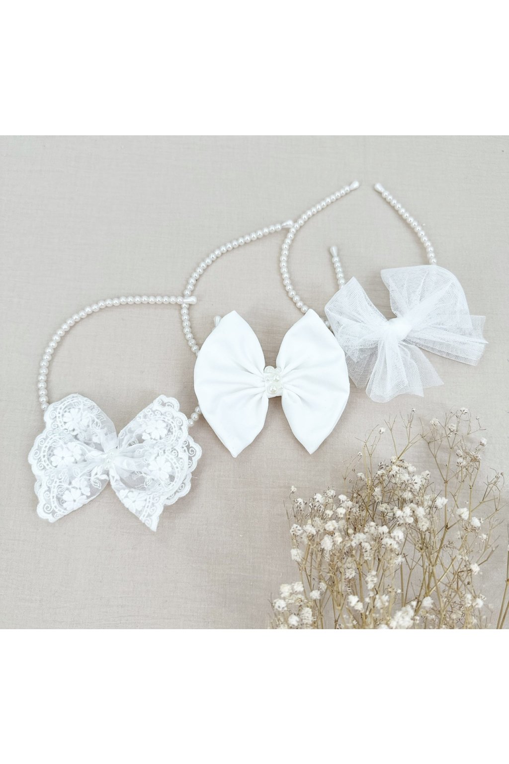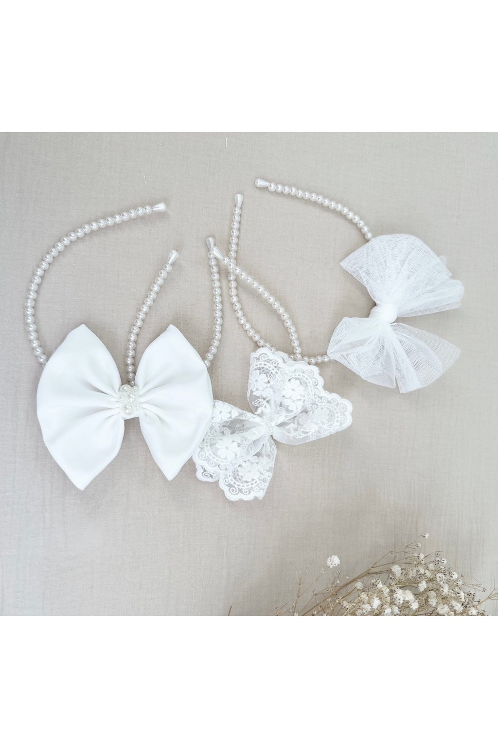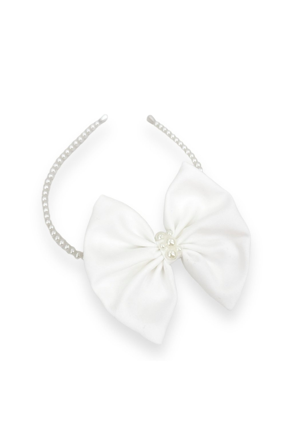 Mašľová čelenka z ecru bavlnenej látky pripevnená na krásnej perleťovej pohodlnej čelenke, je veľmi jemná, netlačí na hlave, vzhľadom na veľkosť odporúčame pre veľkosti nad 92