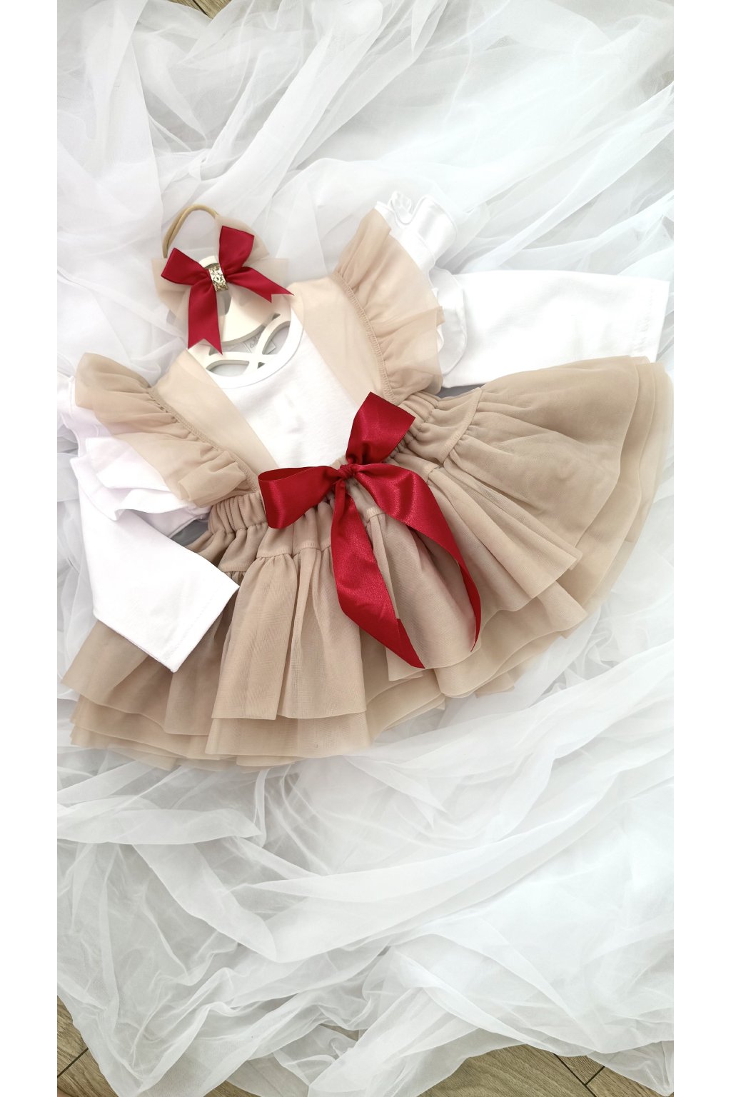 Krásná bohatá stylová suknička aj pre najmenšie detičky vo vianočných farbách